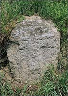 | Popis: kamenná deska s poškozenou horní částí, zbytek reliéfu kříže s nápisem FIAT IUSTITIA (Staň se spravedlnost), pod ramenem meč.